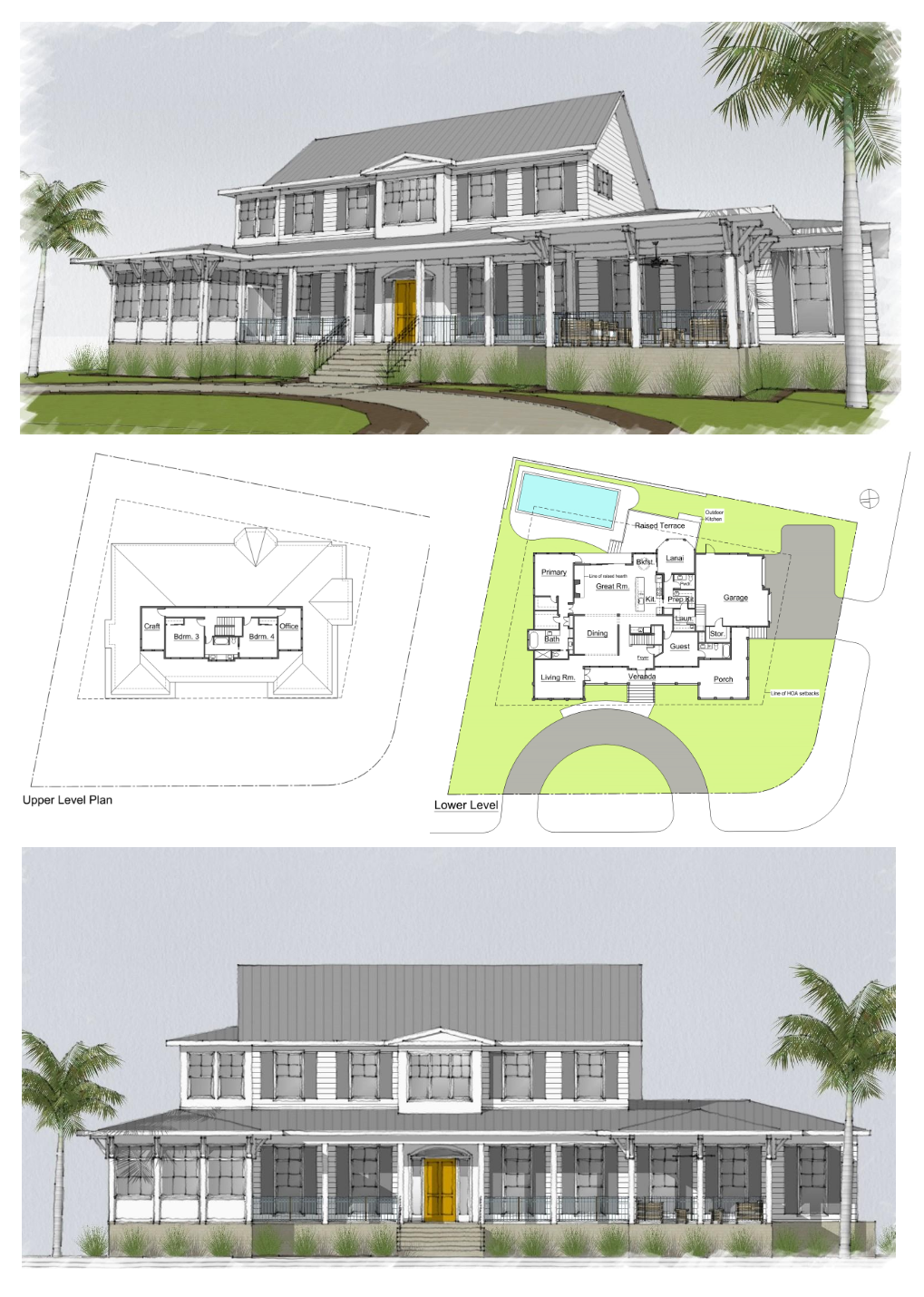 I was engaged by Jonas Yoder Custom Homes in 2022 to provide conceptual design services for a custom home on Bird Key for their client. After a pause in the planning the house is under construction with completion expected in 2026.