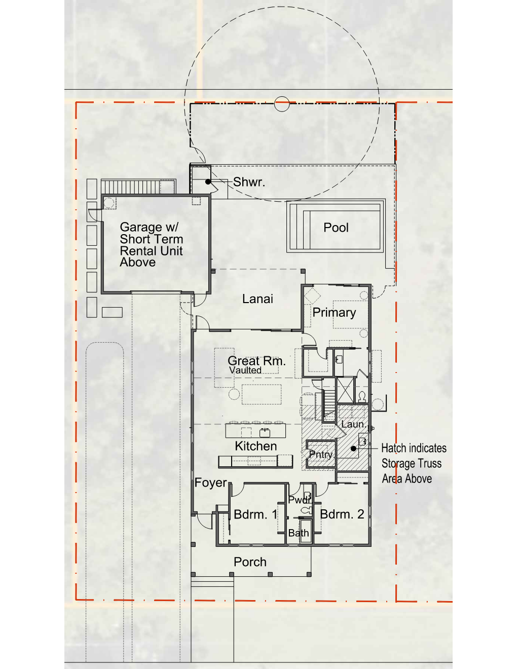 A separate garage is connected to the lanai with a short-term rental unit with separate access is planned above.